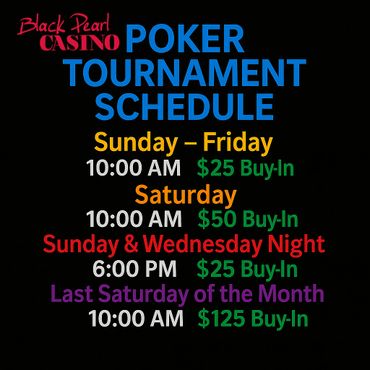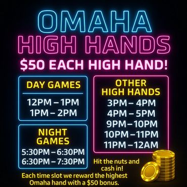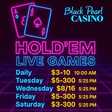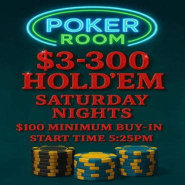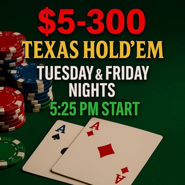 Poker: Starts at 10 a.m. Call or text us at 509-999-0130 for poker game status